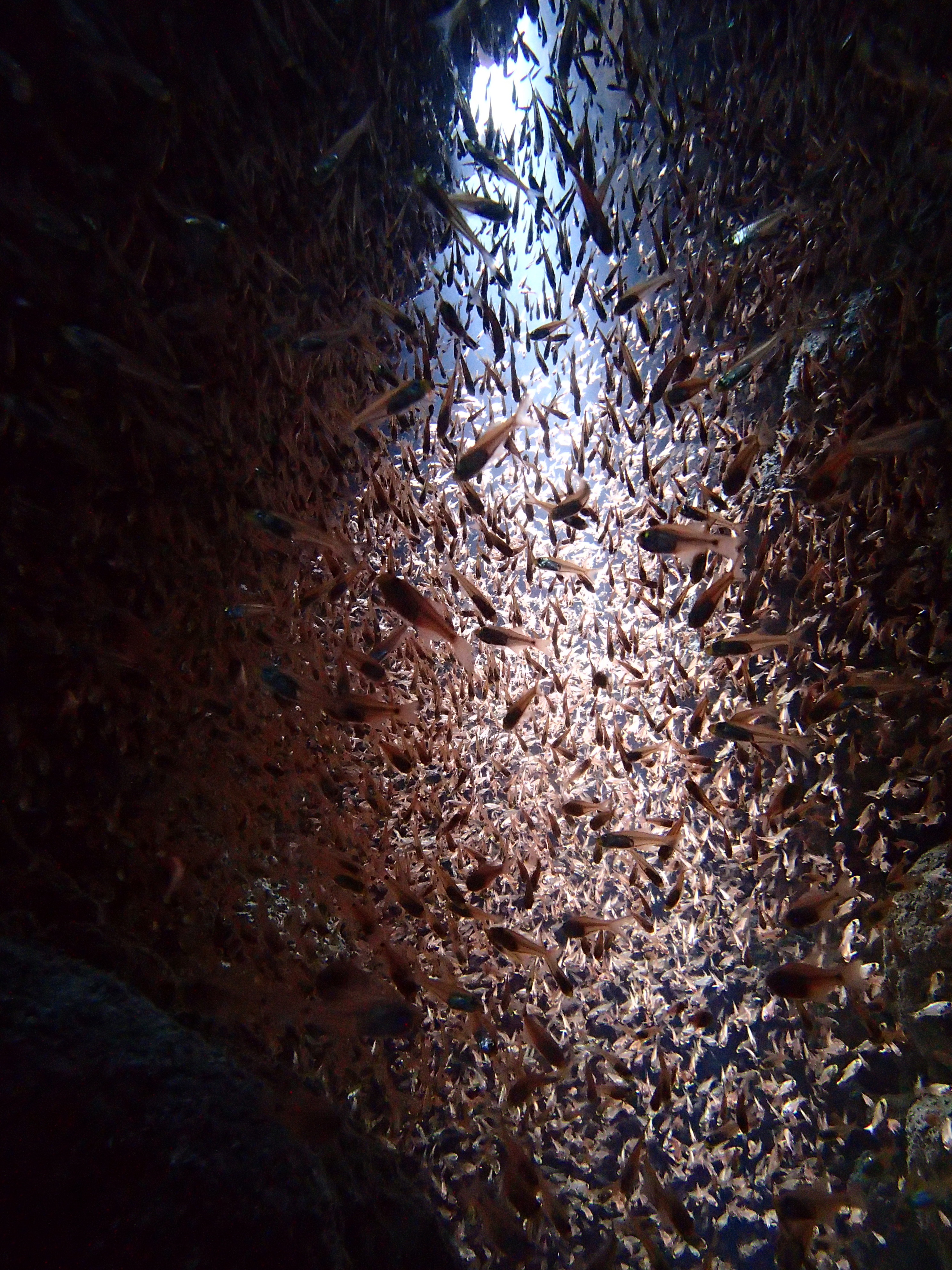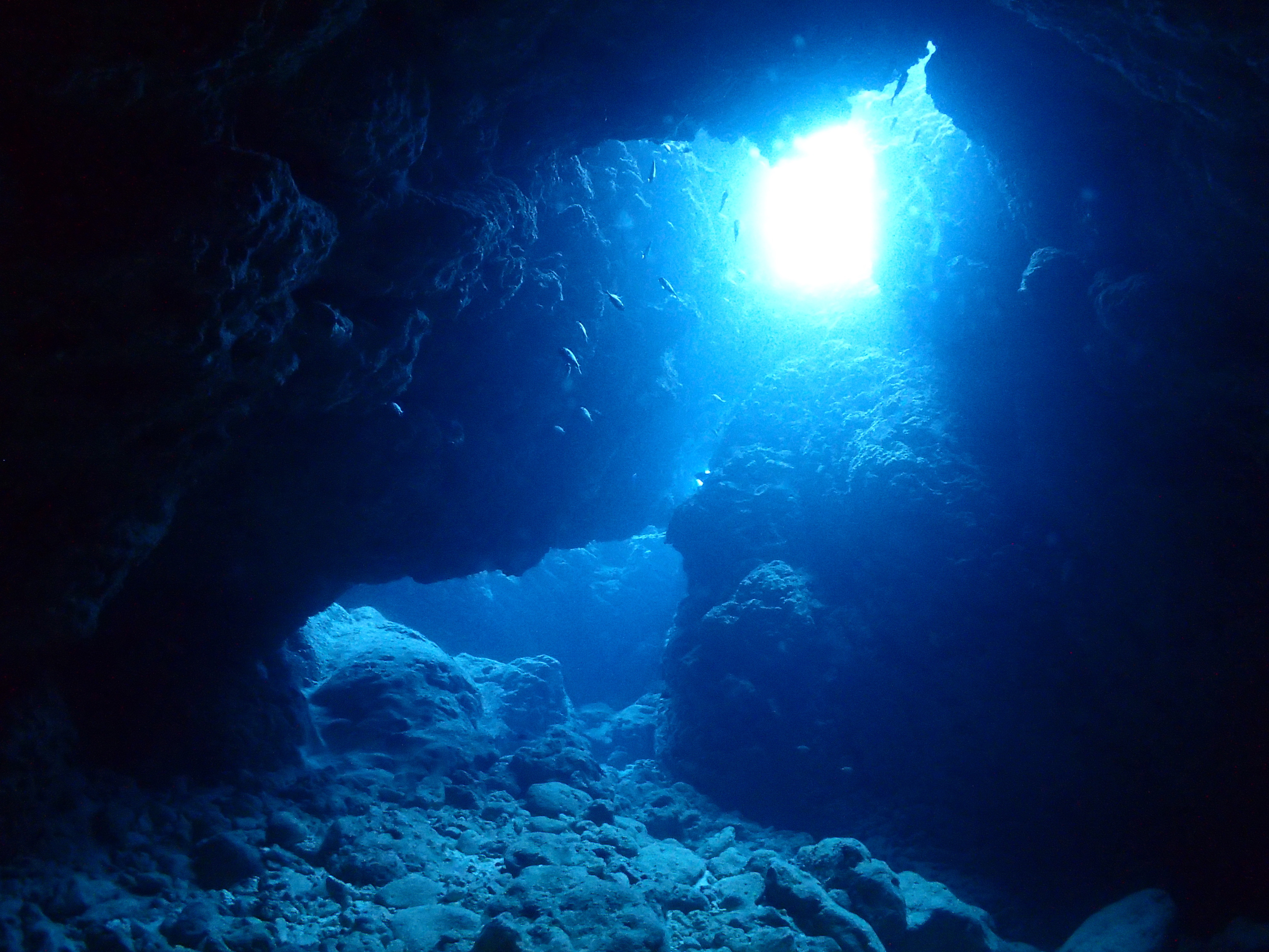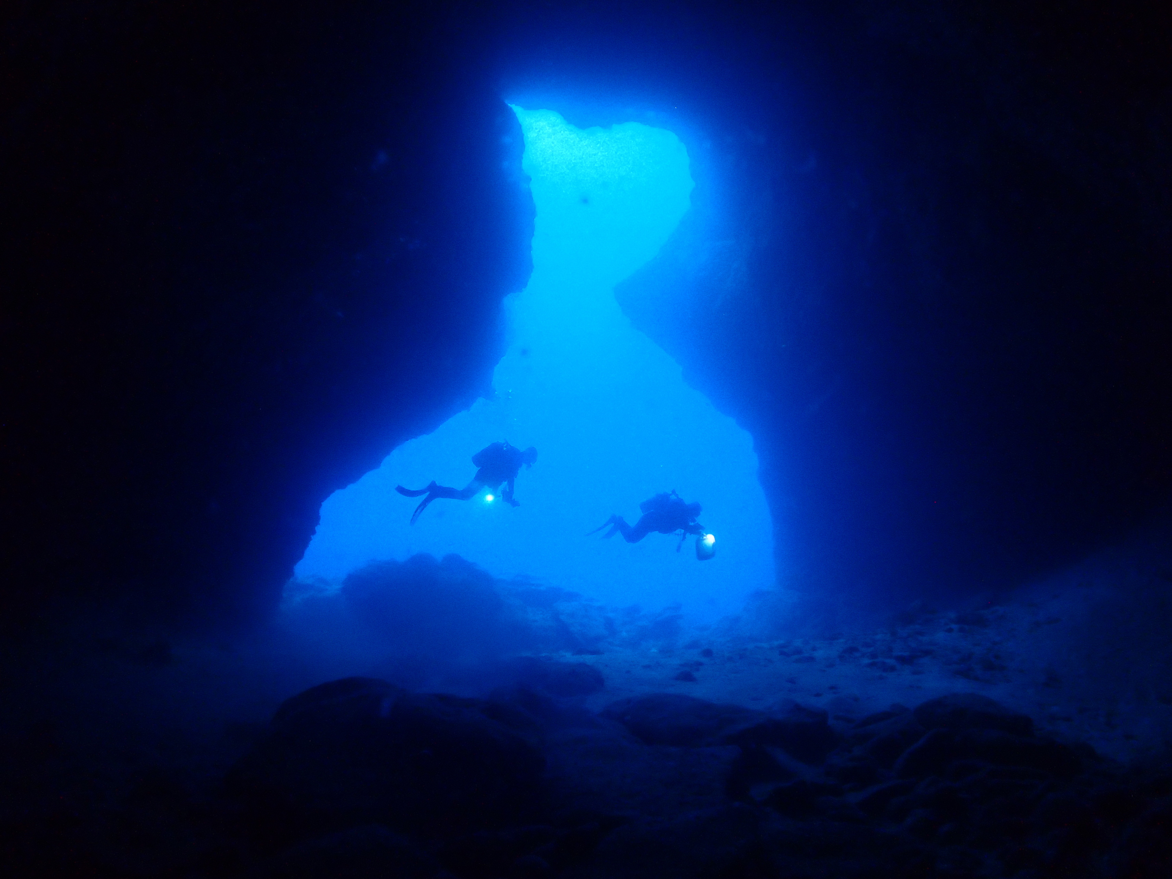 また、穴の中に入り天井に溜まったエアーに光を充てながら外の光景を見てみると・・・